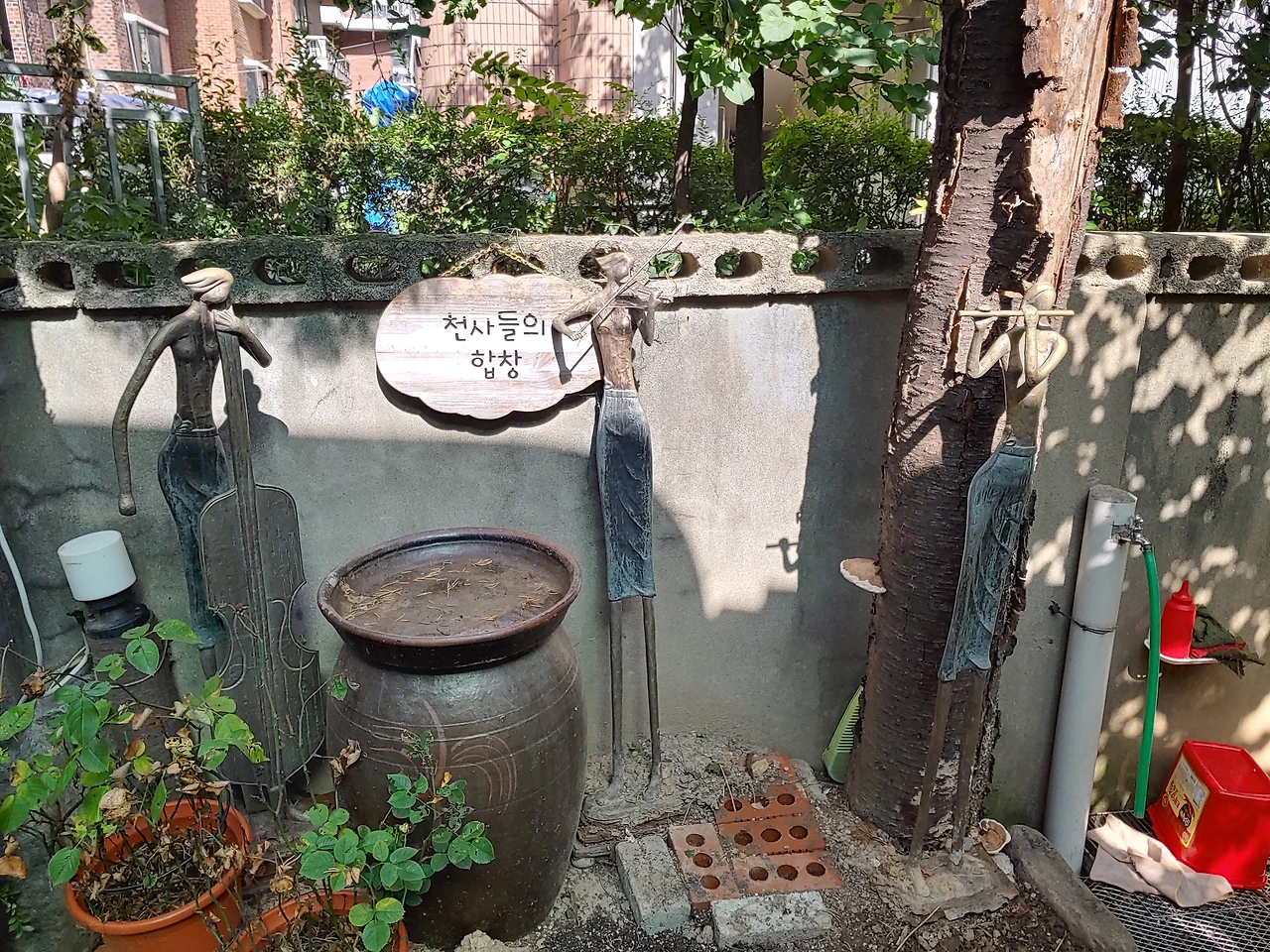 칼국수를 맛있게 먹고 나오는데 식당 마당에 예쁜 조형물이 눈에 띈다.