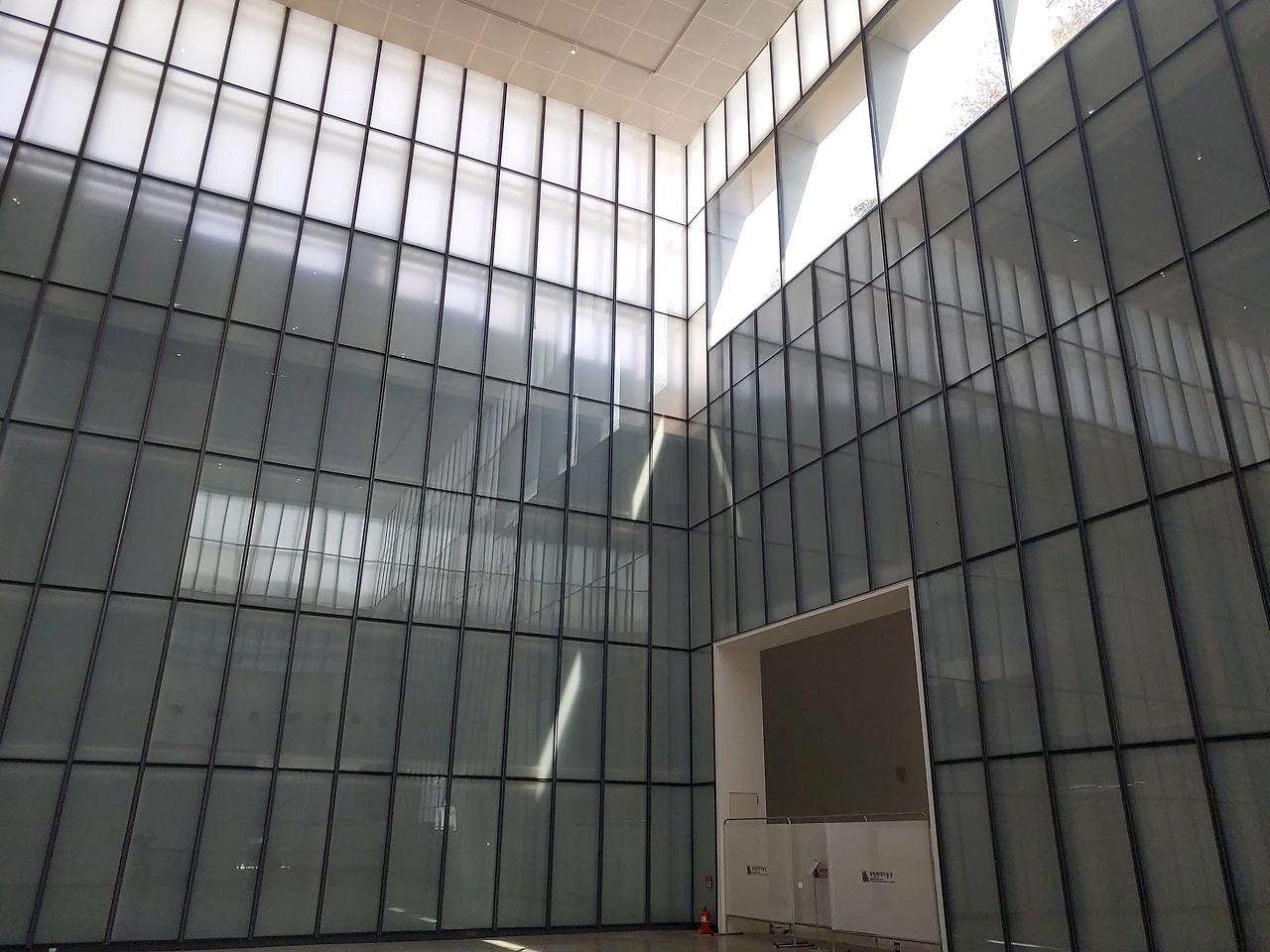 지하 전시관에 창밖에서 빛이 들어온다.