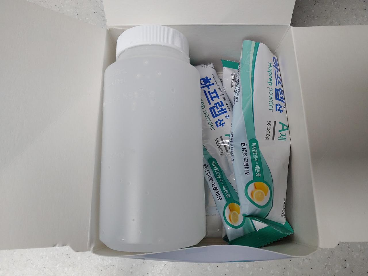 전날 약물 1리터, 다음날 새벽 4시에 또 1리터를 마시라고 쓰여있었다.