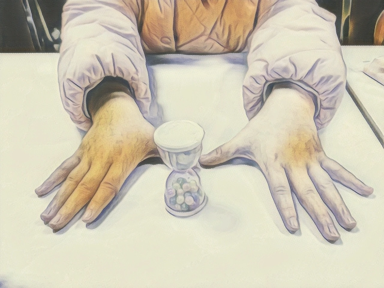 생색을 내며 첫째에게 별사탕 한 알을 준다.