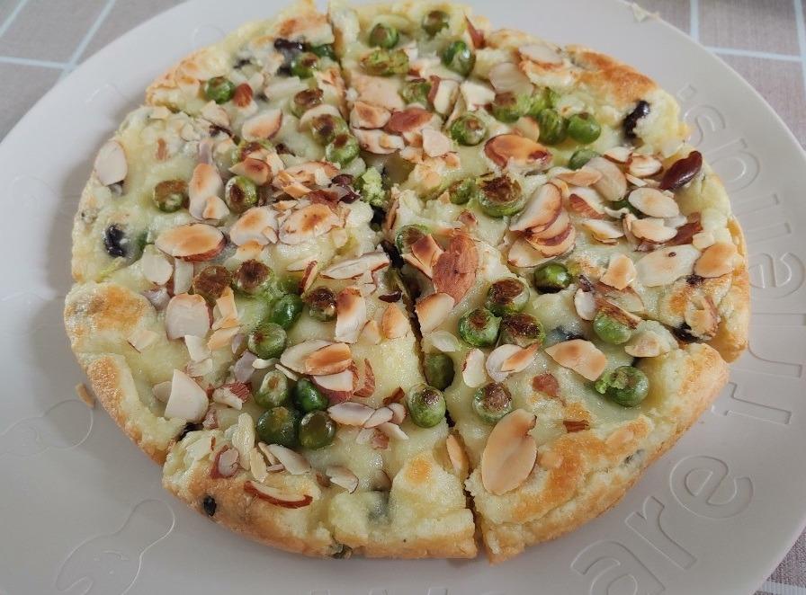 찹쌀파이는 꼭 피자처럼 생겼는데 밀가루 대신 찹쌀을 사용하며 호두, 아몬드 등 각종 견과류와 아이들이 평소에는 안 먹는 완두콩이 올려져 있다. 이상하게 찹쌀파이에 들어가는 완두콩은 입안에 들어가면 입안에서 살살 녹으며 달달한 초콜릿 느낌이 난다. 그리고 담백하면서도 달콤한 맛이 입안을 가득 메운다. 와이프에게 물어보니 팥배기가 함께 해줘서 그런 것 같다고 말한다.