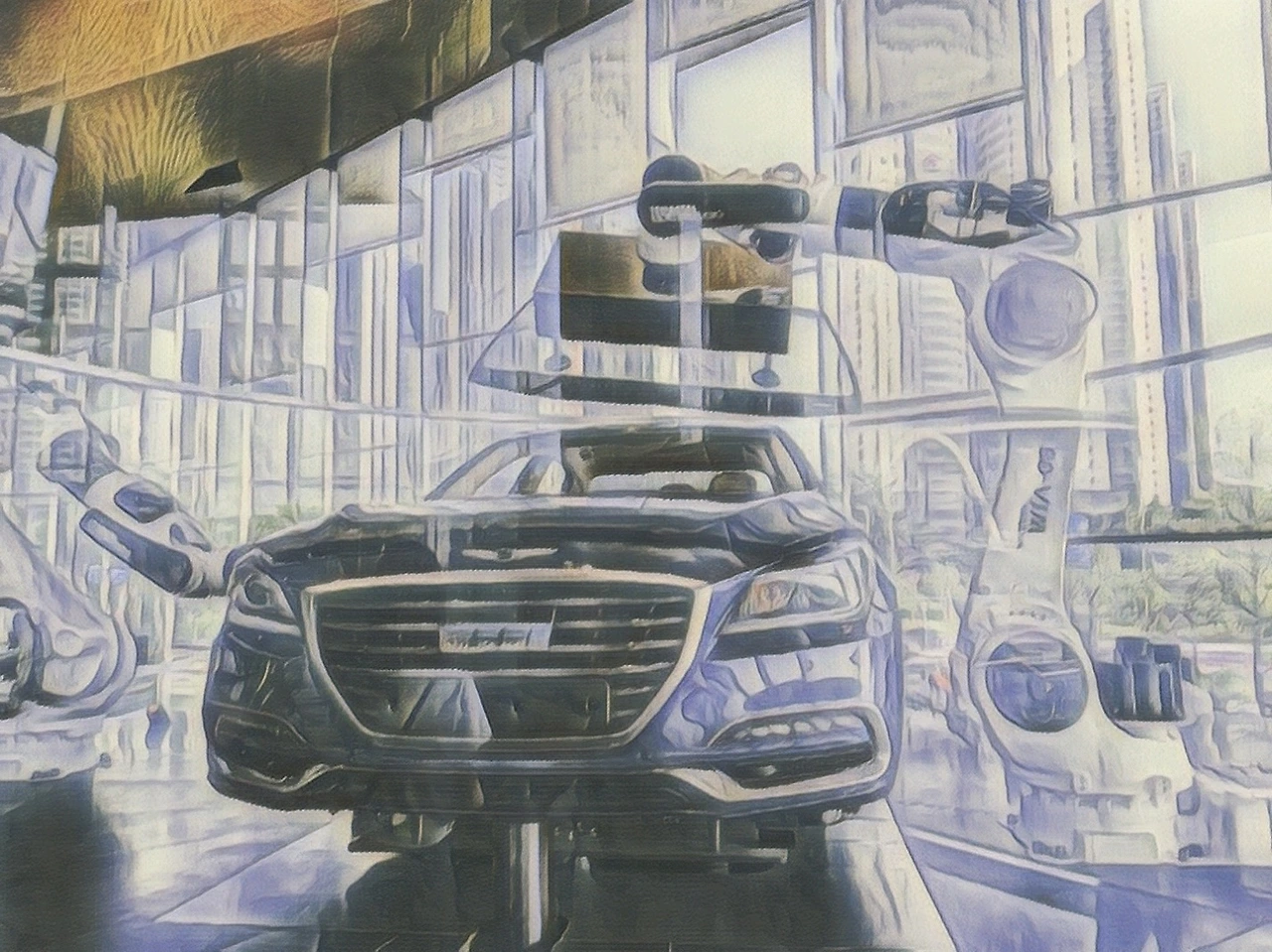 로봇이 차량을 조립한다.