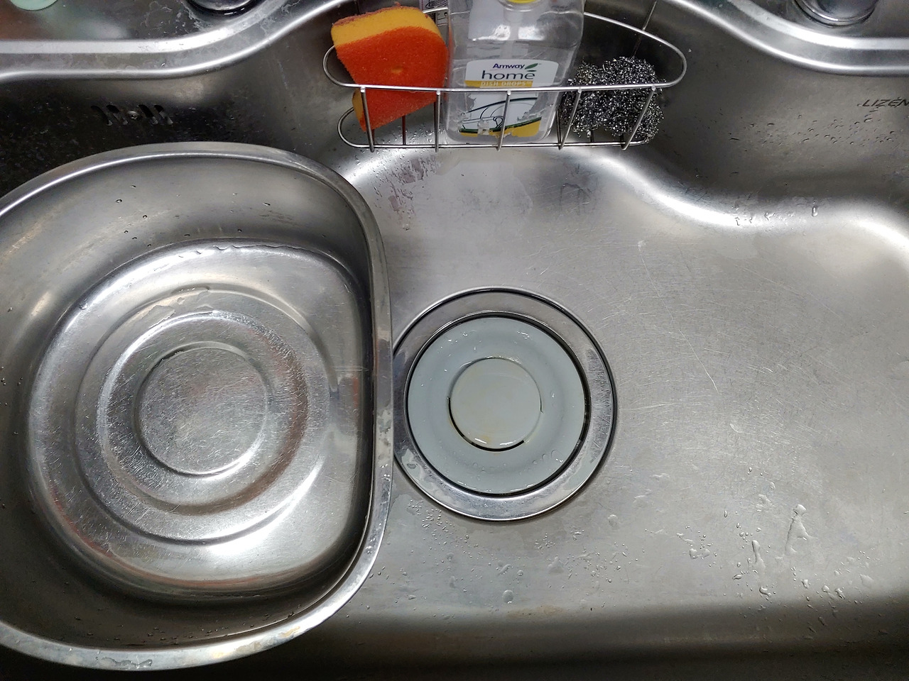 그런데 싱크대 거름망에 음식물이 많이 찼는지 수챗구멍으로 물 빠지는 속도가 현저히 떨어졌다.
