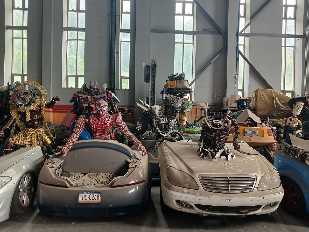 차를 뚫고 나온 컨셉의 피규어 마네킹.