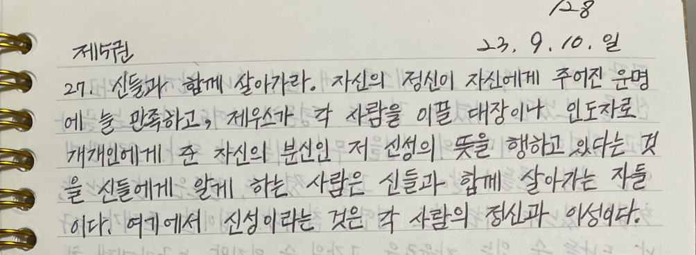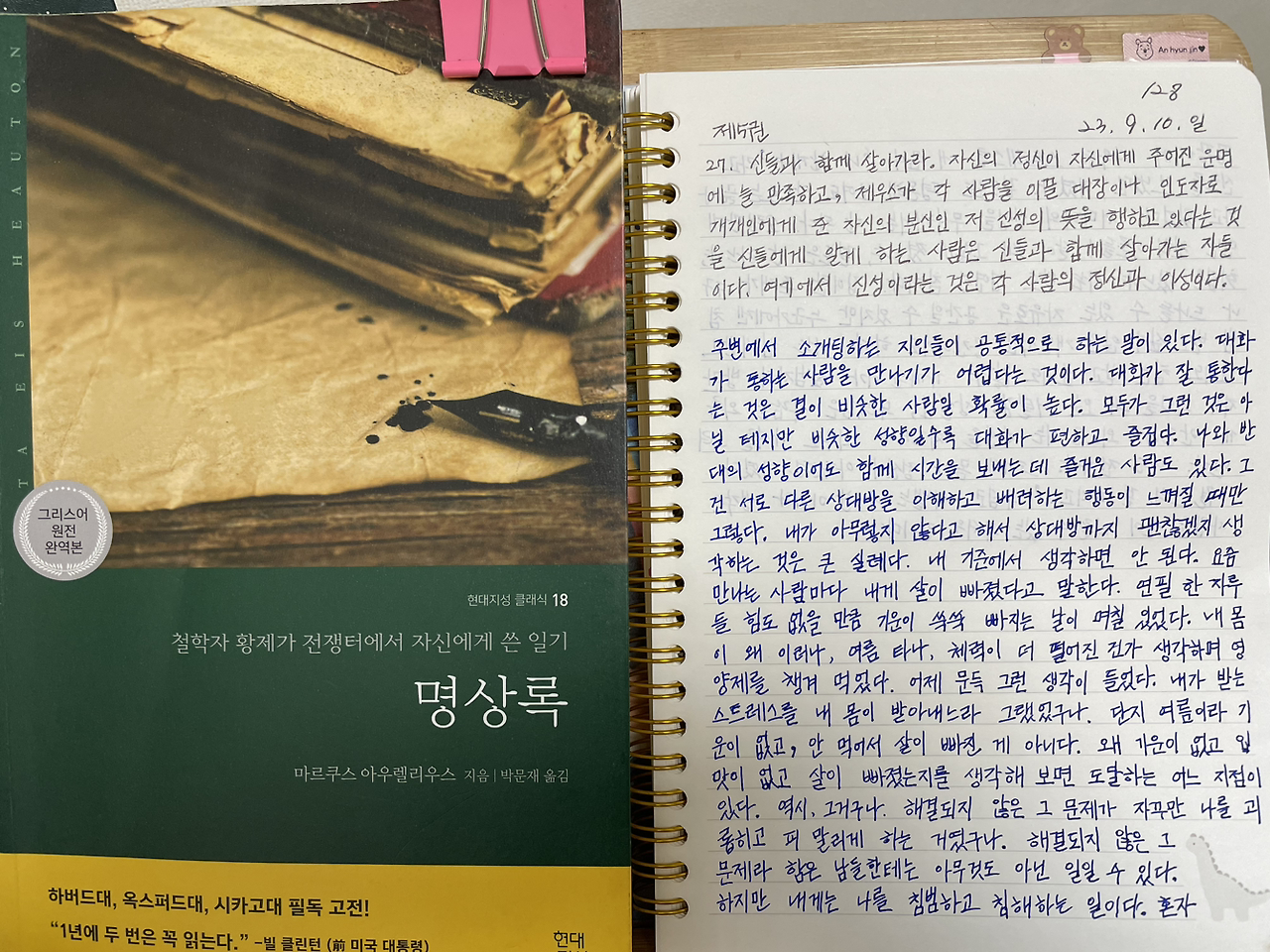 매일 《명상록》을 필사하고 떠오르는 생각을 함께 적고 있습니다.