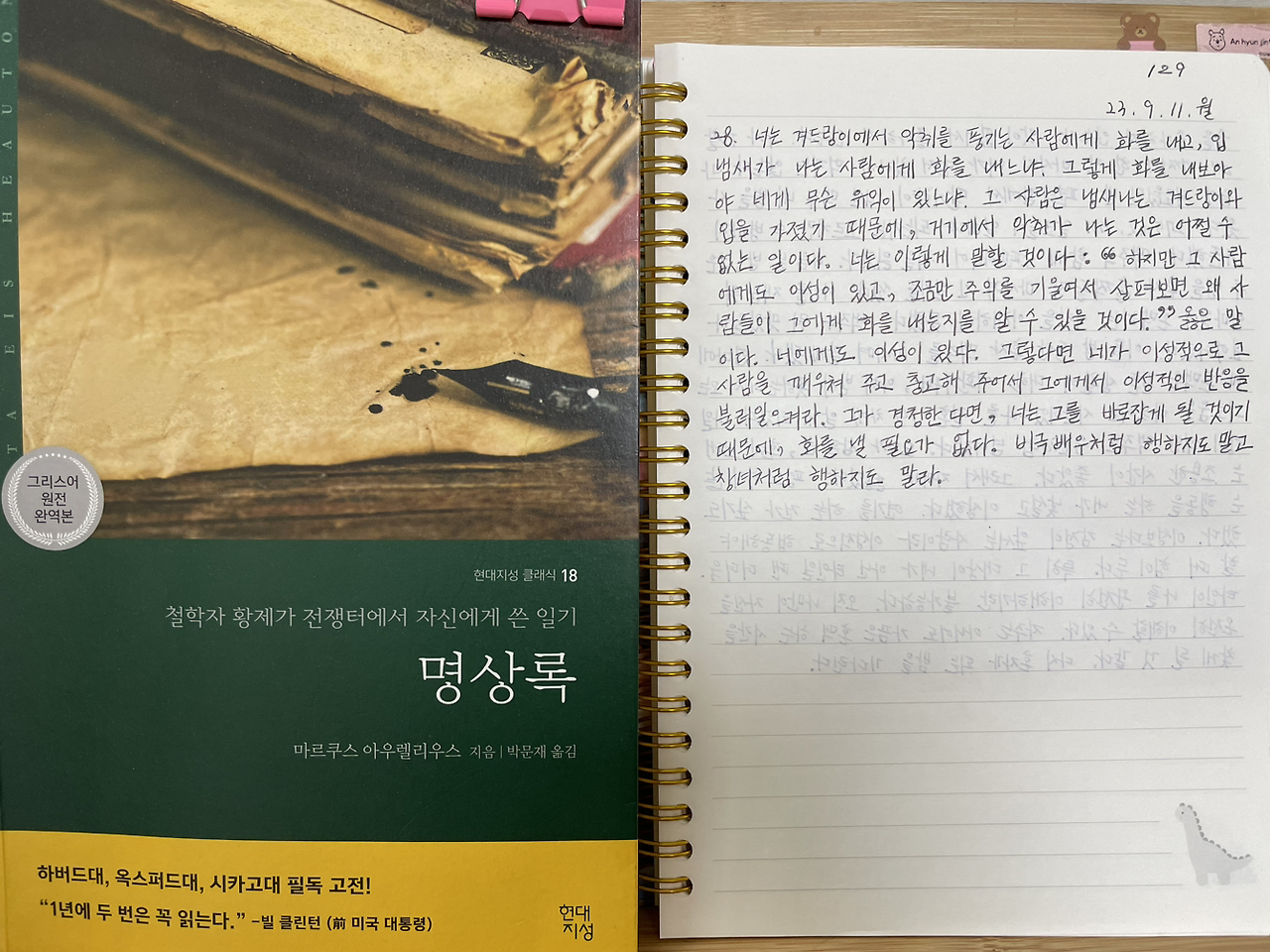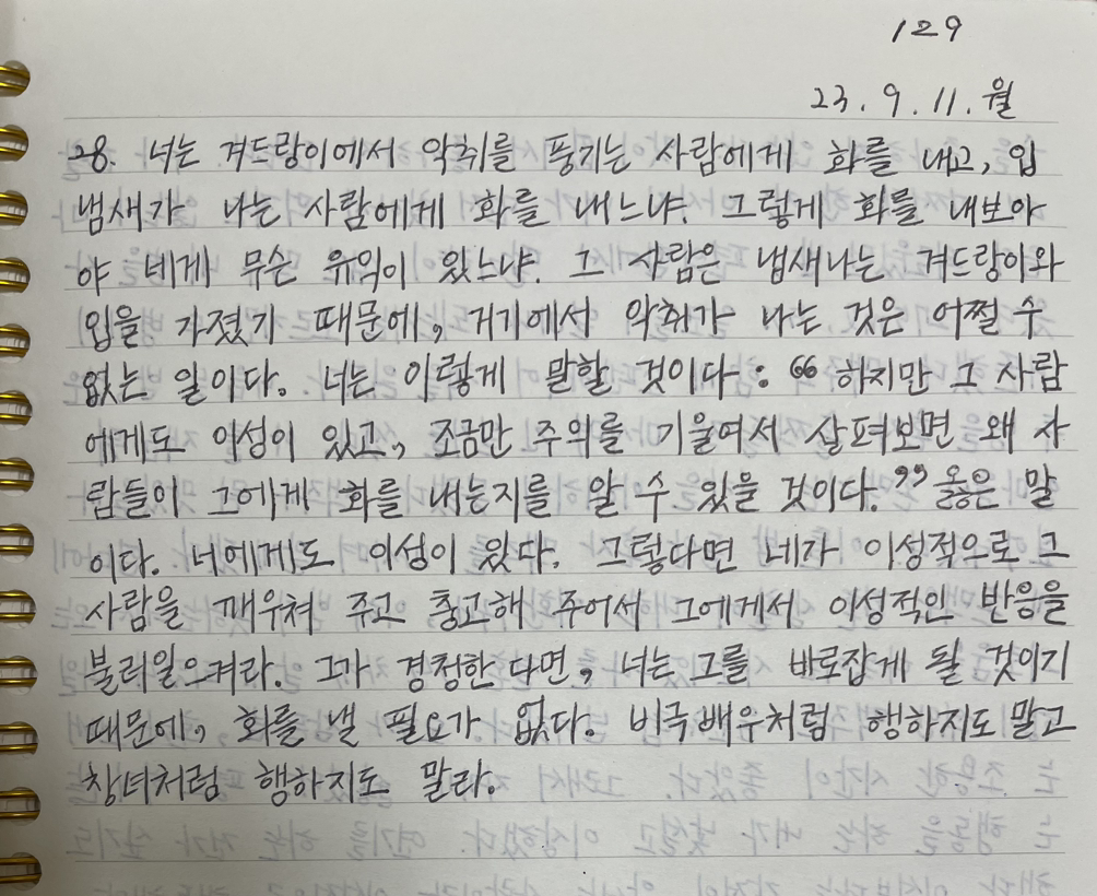 매일 《명상록》을 필사하고 떠오르는 생각을 함께 적고 있습니다.