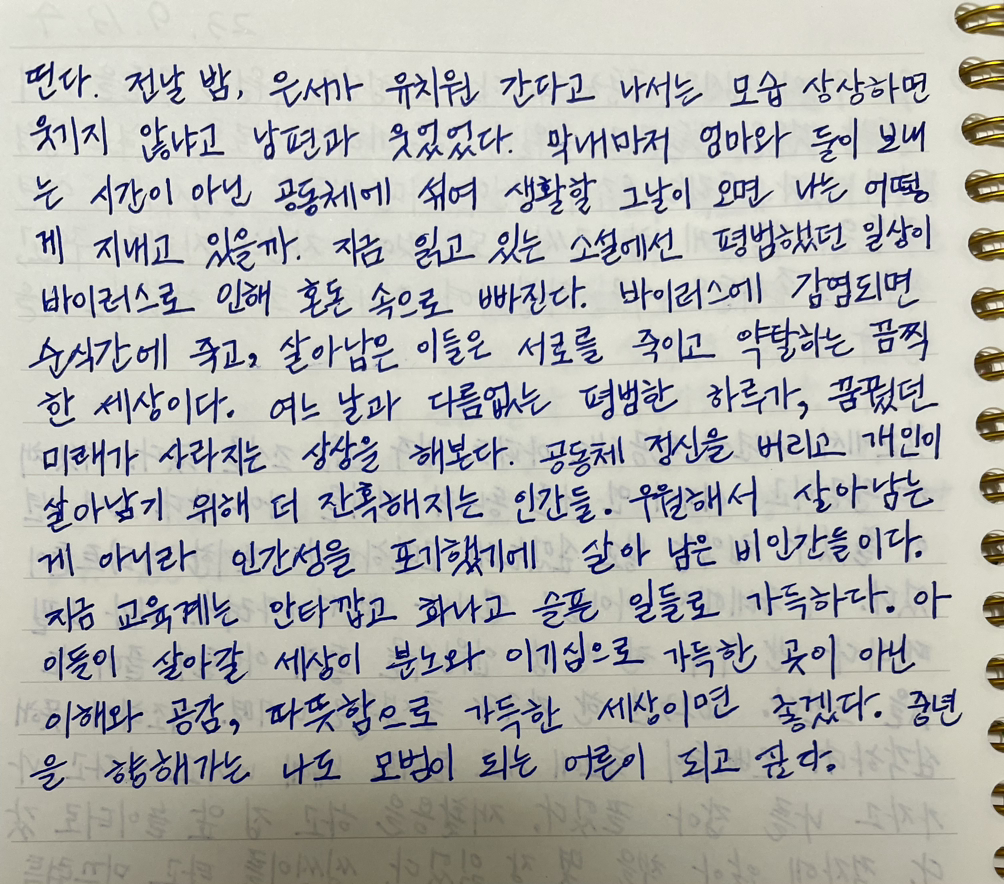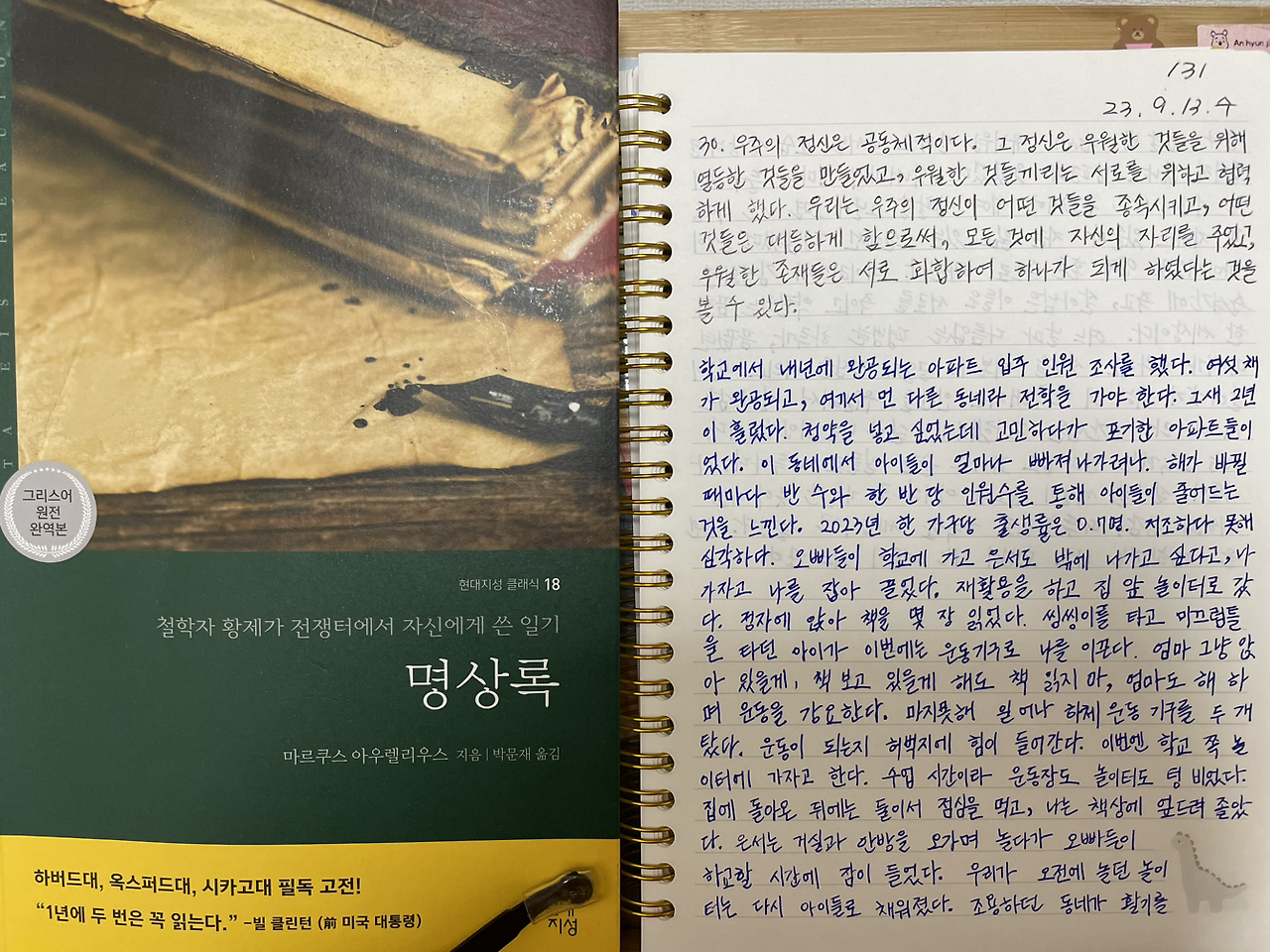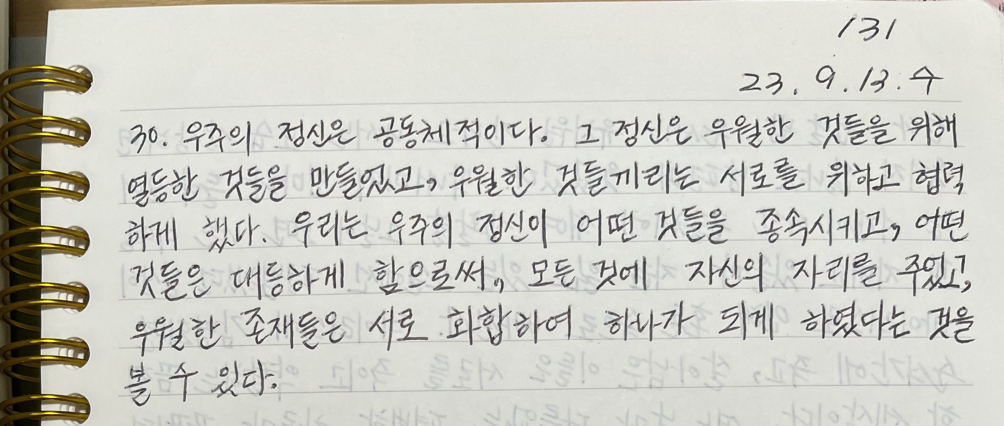 매일 《명상록》을 필사하고 떠오르는 생각을 함께 적고 있습니다.