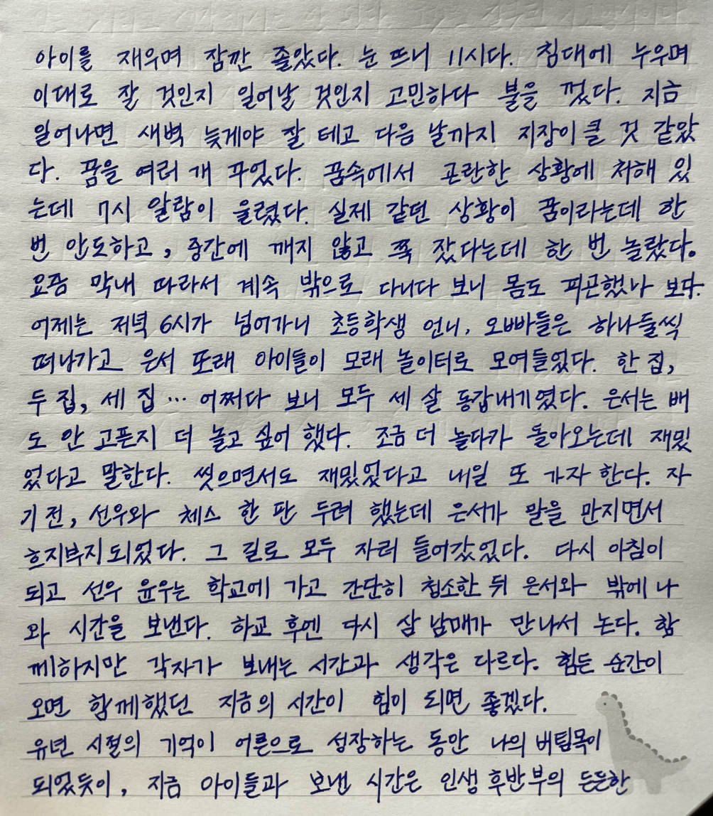유년 시절의 기억이 어른으로 성장하는 동안 나의 버팀목이 되었듯이, 지금 아이들과 보낸 시간은 인생 후반부의 든든한 버팀목이 되어 줄 것이다.