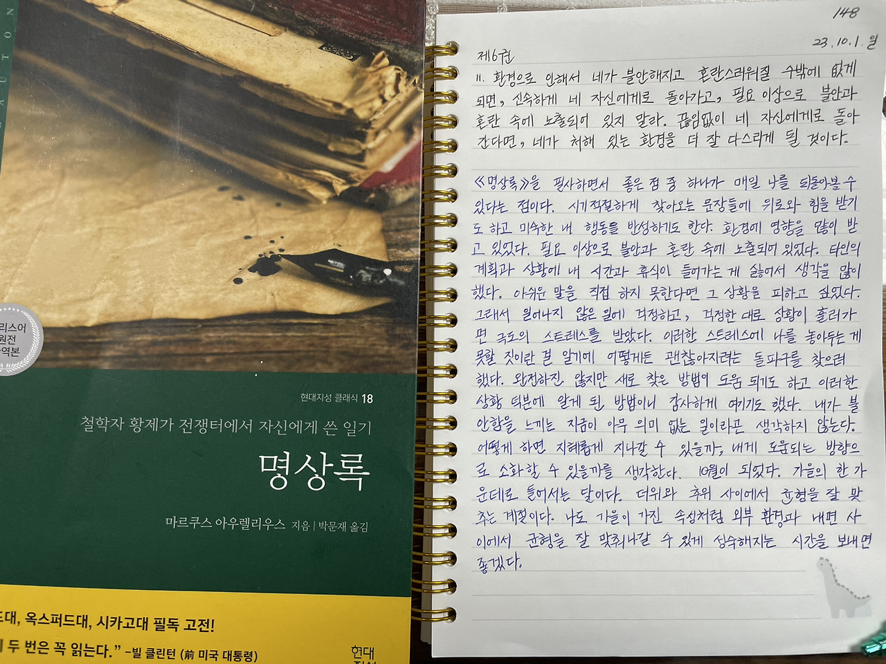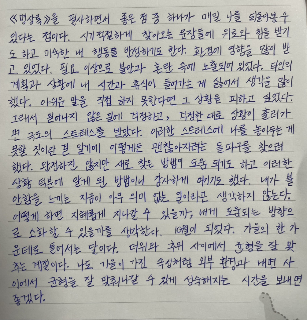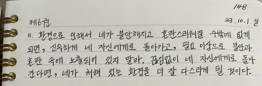 《명상록》을 필사하면서 좋은 점 중 하나가 매일 나를 되돌아볼 수 있다는 점이다.