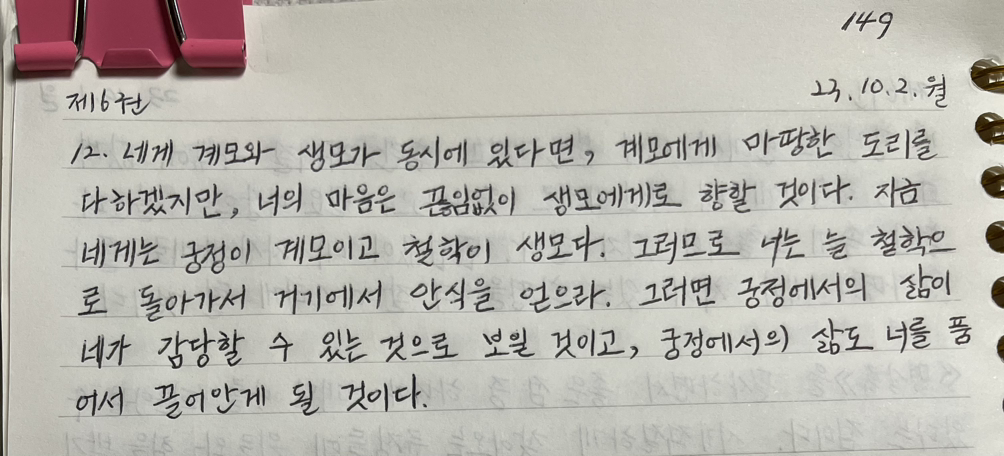 -《명상록》, 마르쿠스 아우렐리우스_제6권 12 중에서