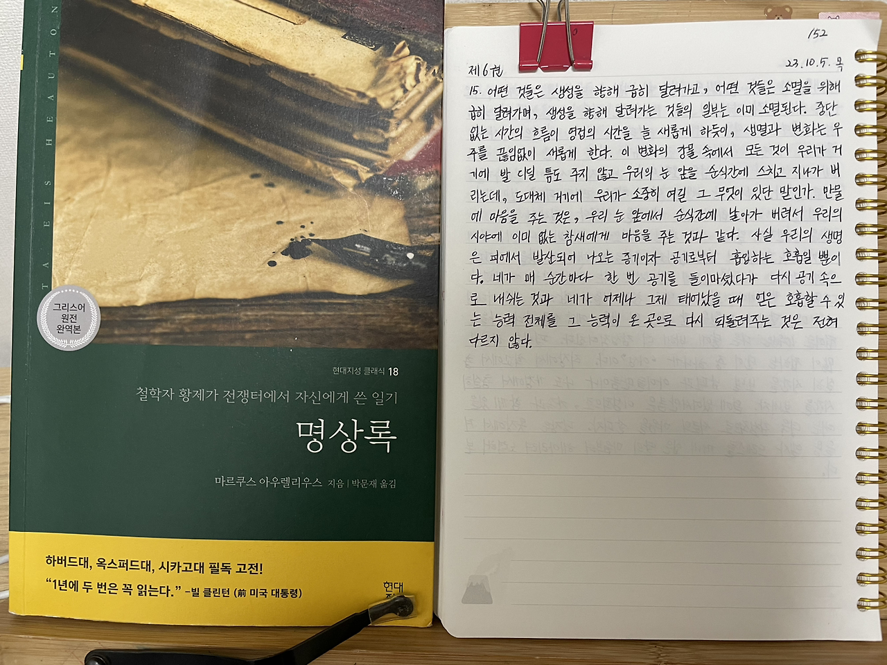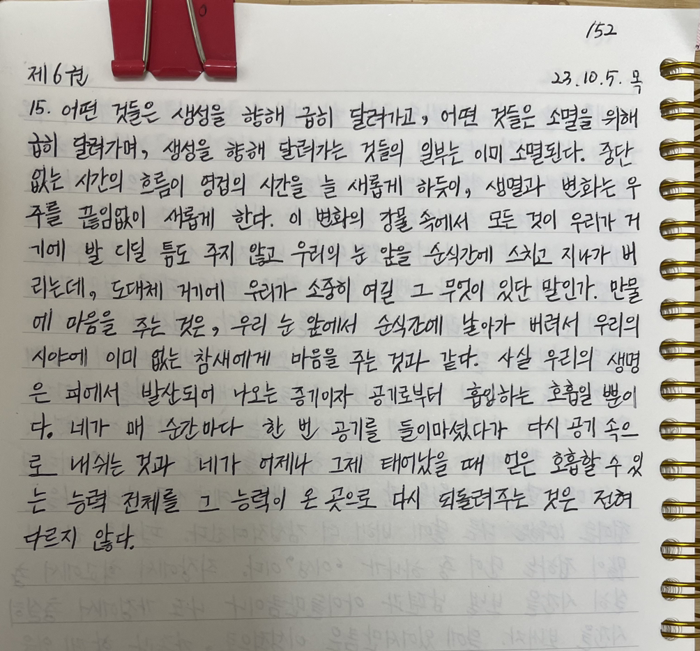 -《명상록》, 마르쿠스 아우렐리우스_제6권 15 중에서