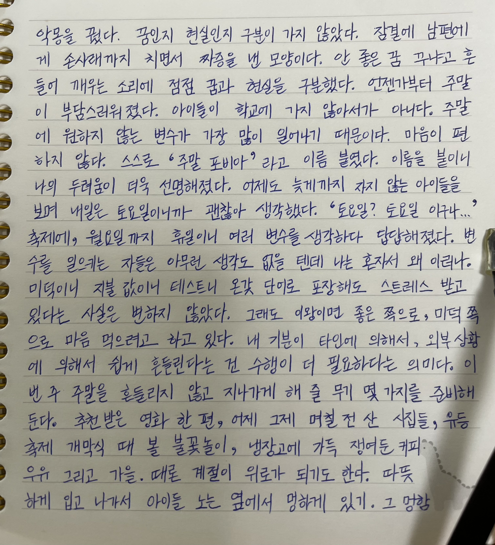 안 좋은 꿈 꾸냐고 흔들어 깨우는 소리에 점점 꿈과 현실을 구분했다.