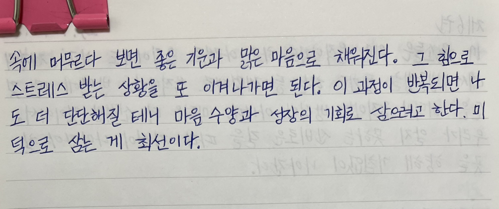 그 힘으로 스트레스 받는 상황을 또 이겨나가면 된다.
