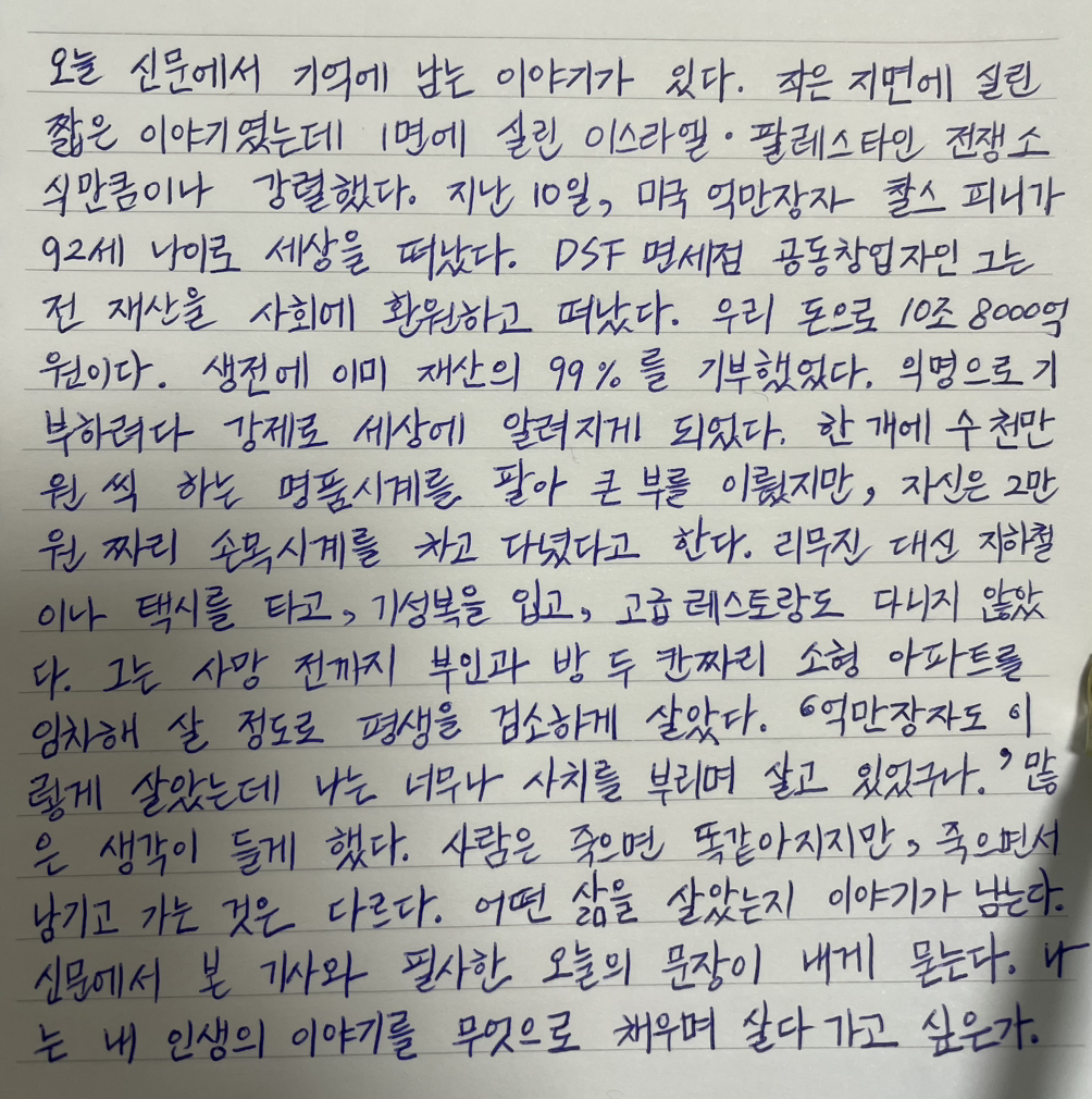신문에서 본 기사와 필사한 오늘의 문장이 내게 묻는다.