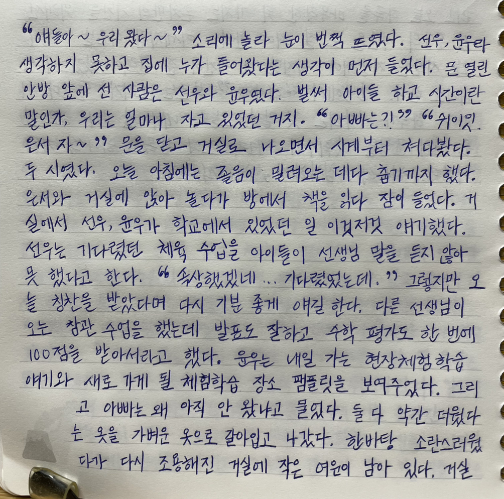 선우, 윤우라 생각하지 못하고 집에 누가 들어왔다는 생각이 먼저 들었다.