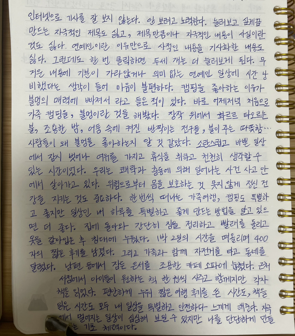 편안하게 누워 짧은 여행 후기를 쓴 시간도, 책을 읽은 시간도 모두 내 일상을 특별하고 안전하다 느끼게 해 준다.