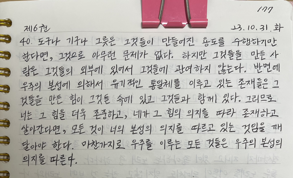 -《명상록》, 마르쿠스 아우렐리우스_제6권 40 중에서