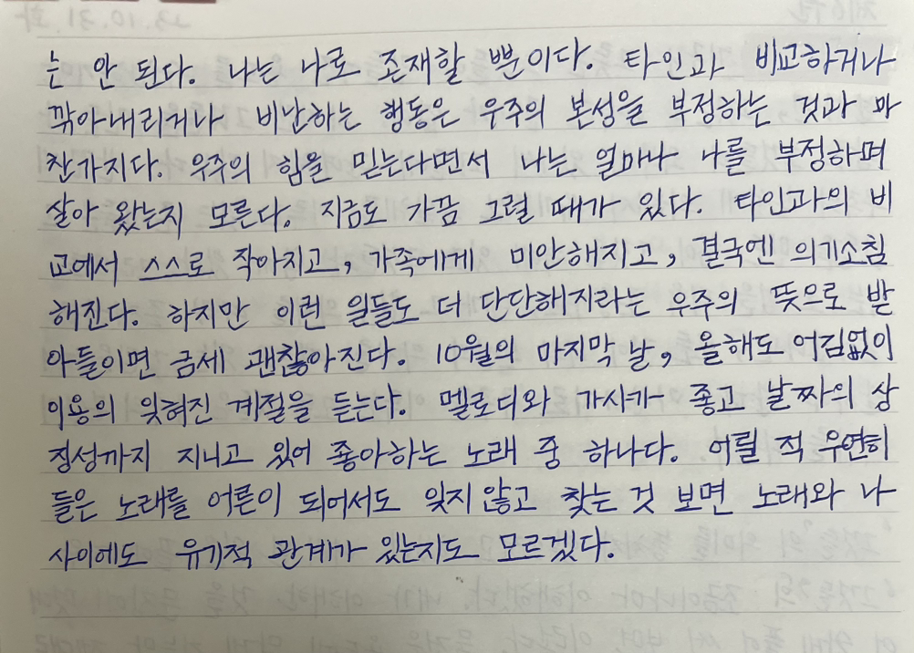 우주의 힘을 믿는다면서 나는 얼마나 나를 부정하며 살아왔는지 모른다.