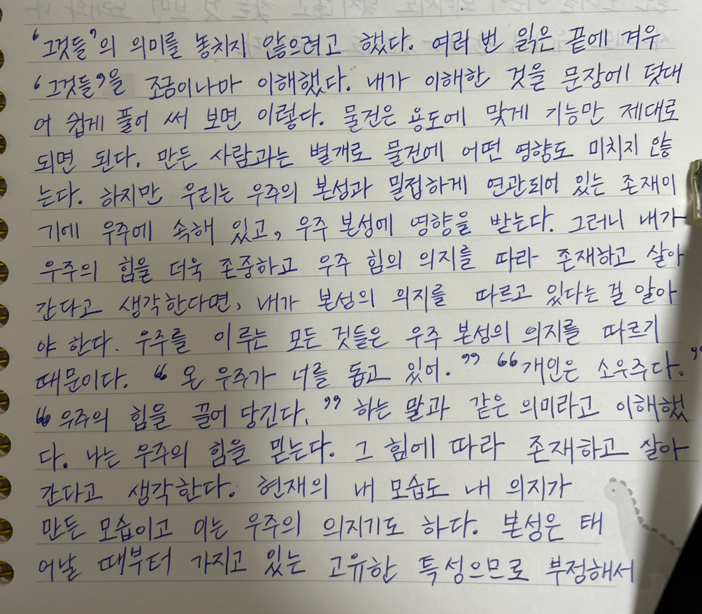 우주를 이루는 모든 것들은 우주 본성의 의지를 따르기 때문이다.