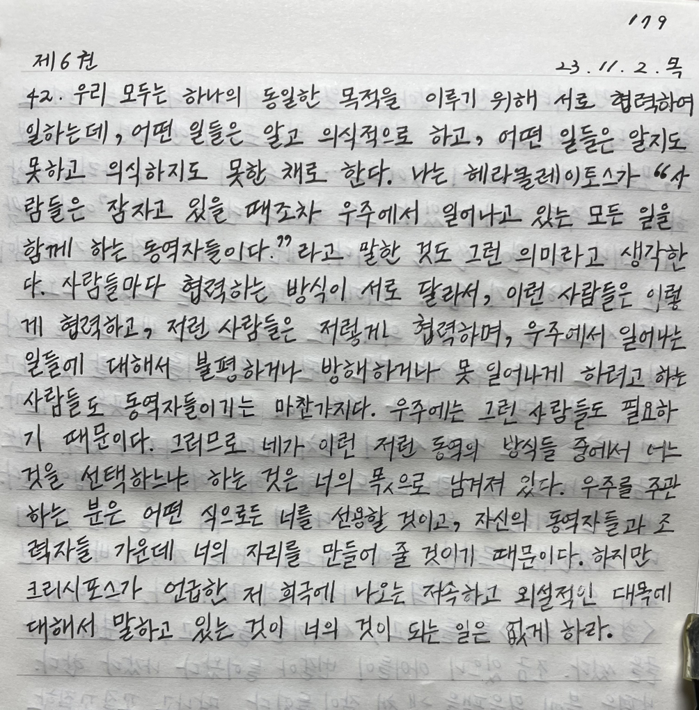 -《명상록》, 마르쿠스 아우렐리우스_제6권 42 중에서