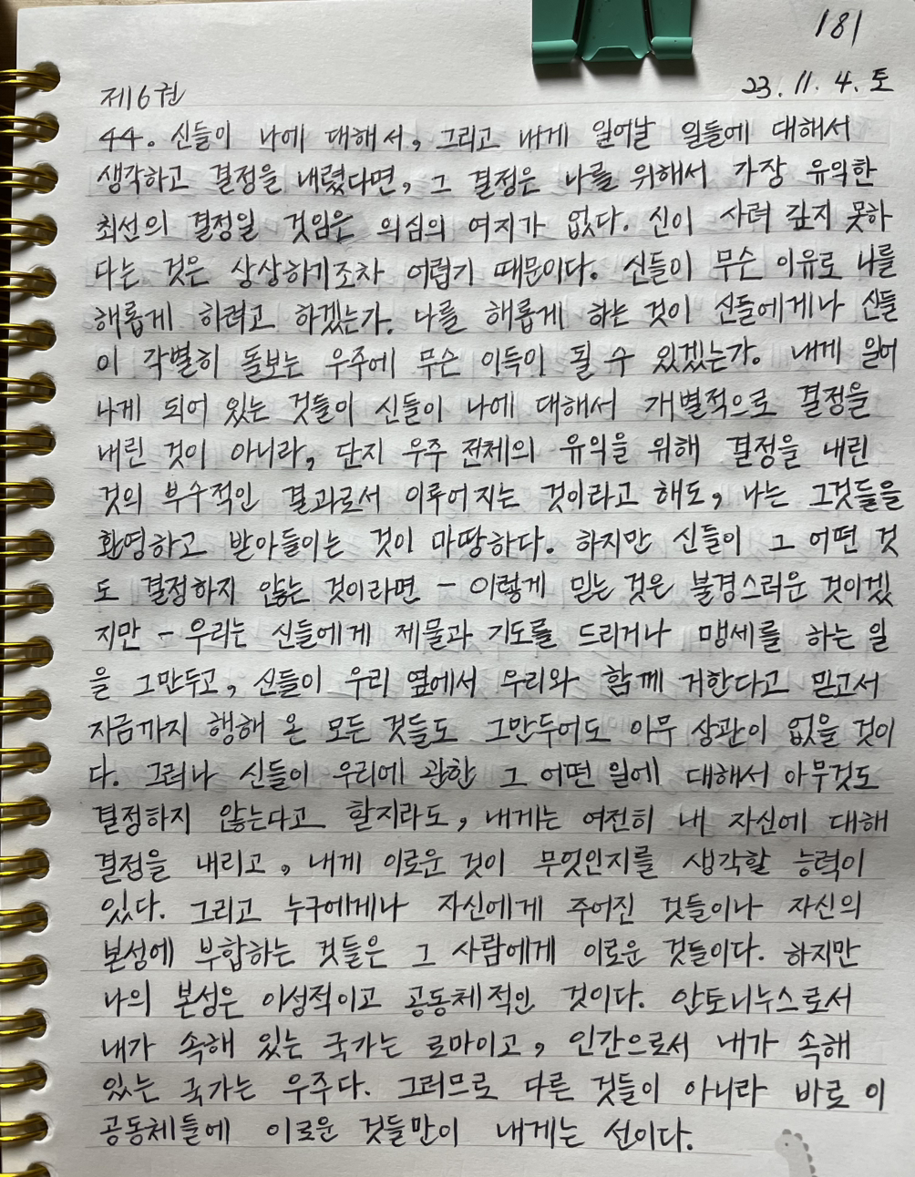 -《명상록》, 마르쿠스 아우렐리우스_제6권 44 중에서