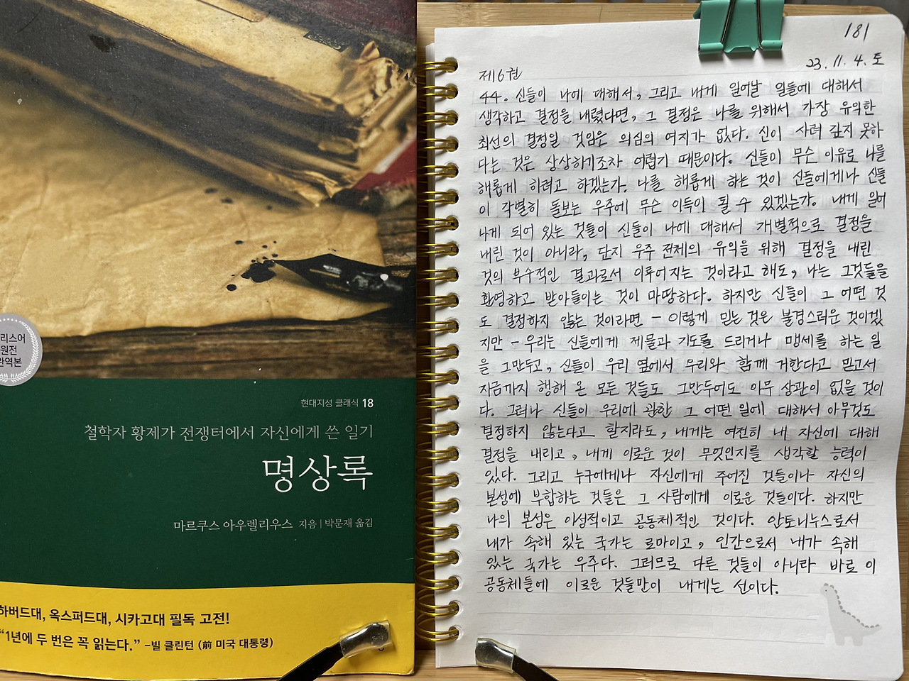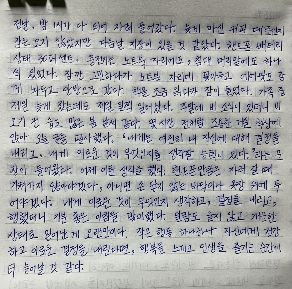몇 시간 전처럼 조용한 거실 책상에 앉아 오늘 글을 필사했다.