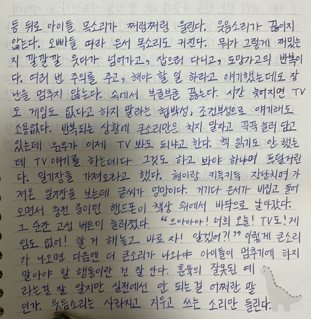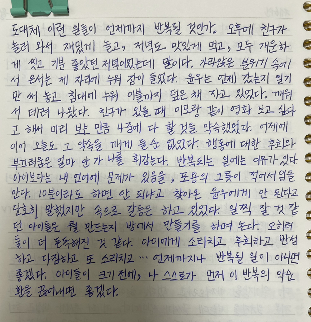 아이들이 크기 전에, 나 스스로가 먼저 이 반복의 악순환을 끊어내면 좋겠다.