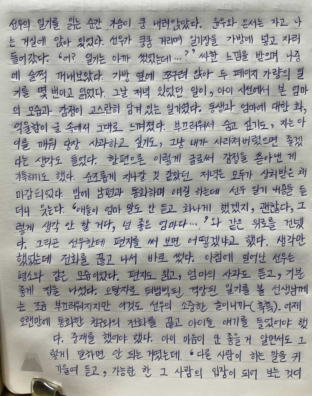 선우의 일기를 읽는 순간 가슴이 쿵 내려앉았다.