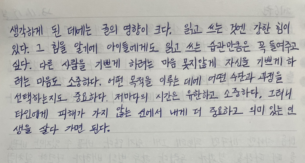 소극적이고 내성적이던 아이가 이렇게 자기 생각을 드러내고 타인이 아닌 나를 더 생각하게 된 데에는 글의 영향이 크다.
