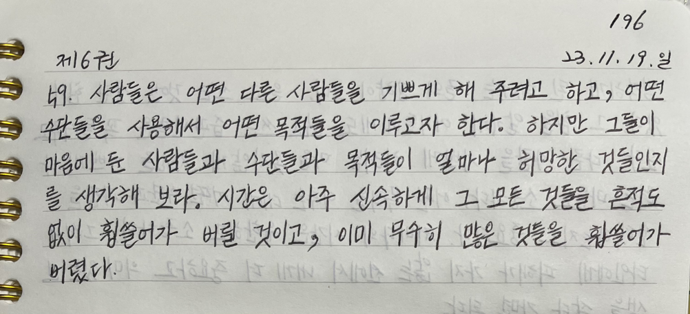 《명상록》을 읽고 필사하면서 더욱 느낀다.