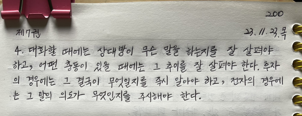 대화할 때에는 상대방이 무슨 말을 하는지를 잘 살펴야 하고, 어떤 충동이 있을 때에는 그 추이를 잘 살펴야 한다.