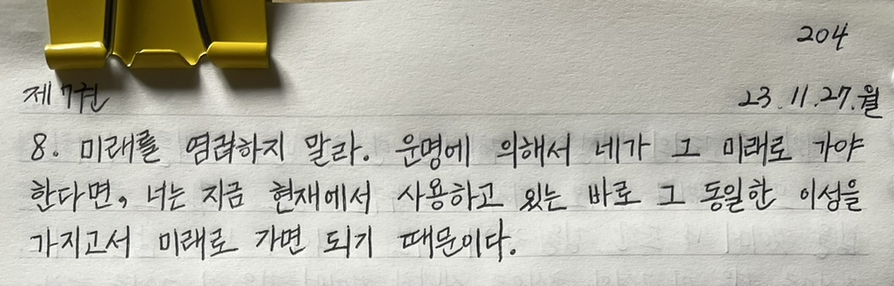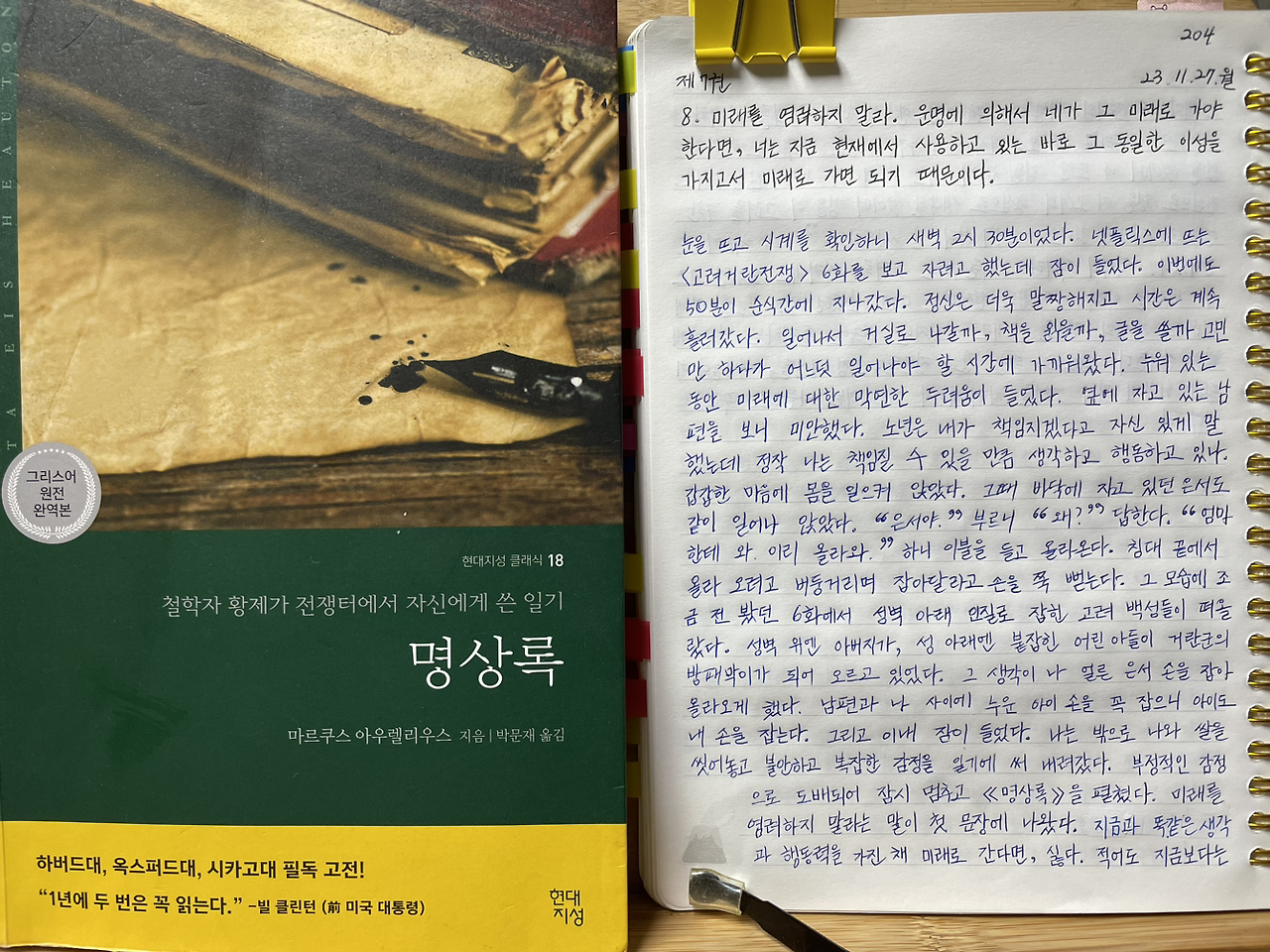 부정적인 감정으로 도배되어 잠시 멈추고 《명상록》을 펼쳤다.