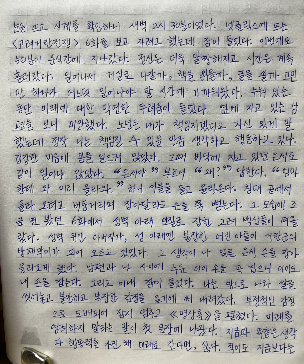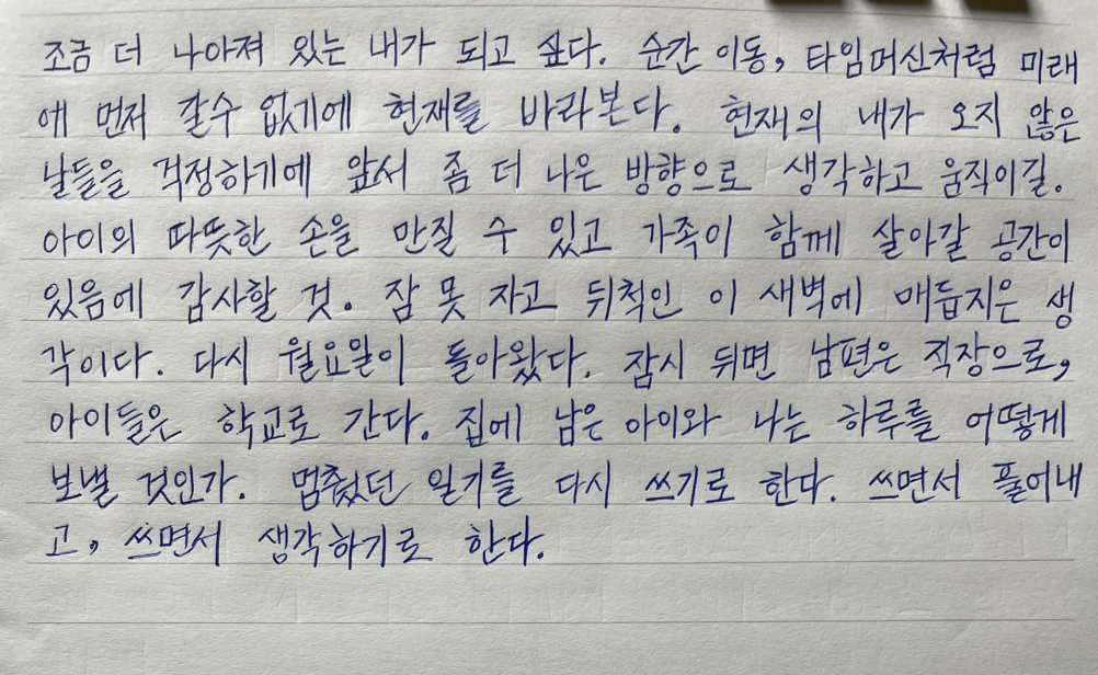 나는 밖으로 나와 쌀을 씻어놓고 불안하고 복잡한 감정을 일기에 써 내려갔다.