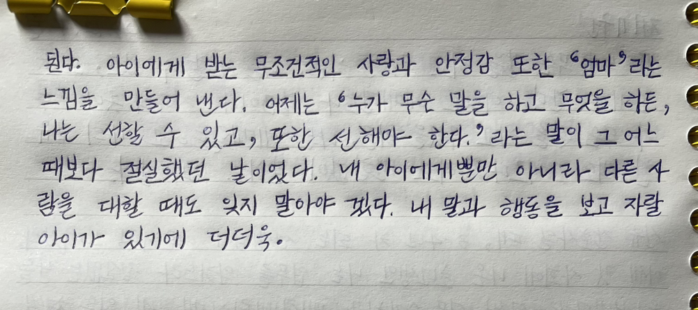내 말과 행동을 보고 자랄 아이가 있기에 더더욱.
