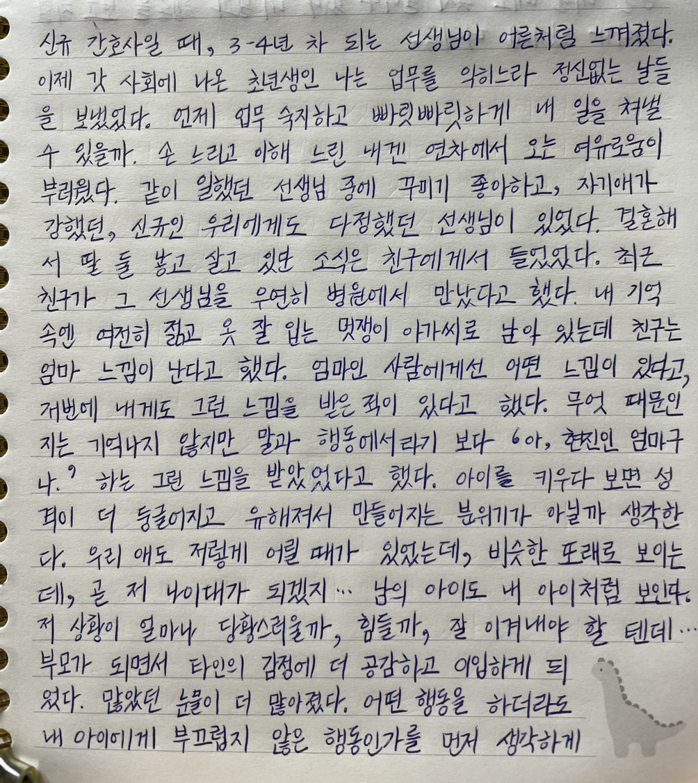 신규 간호사일 때, 3-4년 차 되는 선생님이 어른처럼 느껴졌다.