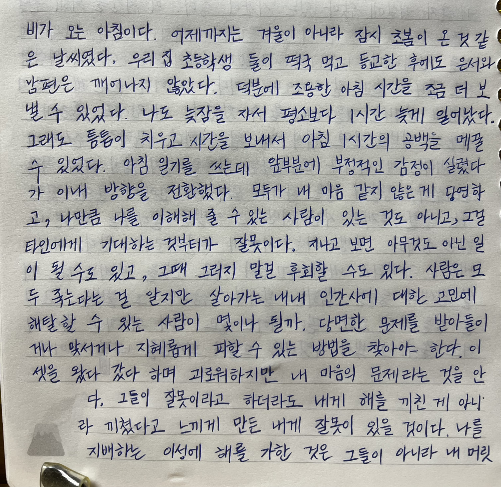 아침 일기를 쓰는데 앞부분에 부정적인 감정이 실렸다가 이내 방향을 전환했다.