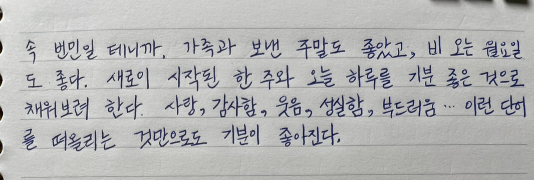 새로이 시작된 한 주와 오늘 하루를 기분 좋은 것으로 채워보려 한다.