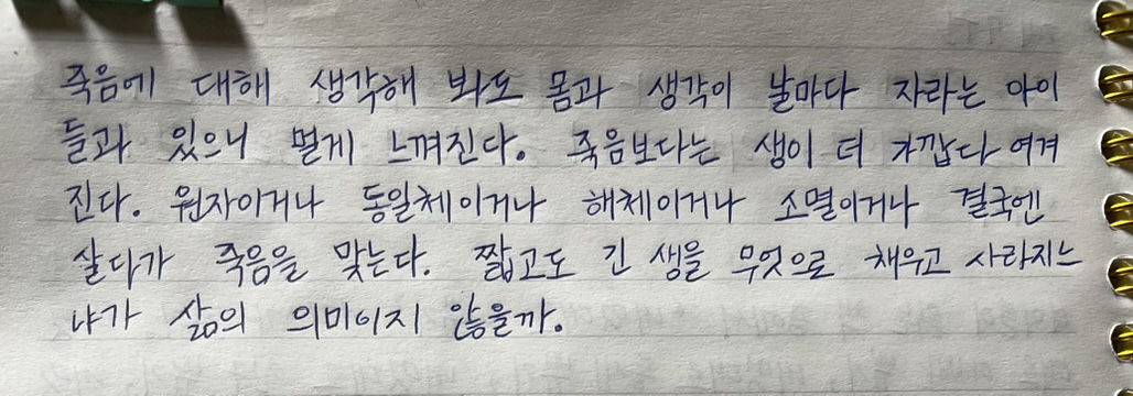 죽음에 대해 생각해 봐도 몸과 생각이 날마다 자라는 아이들과 있으니 멀게 느껴진다.
