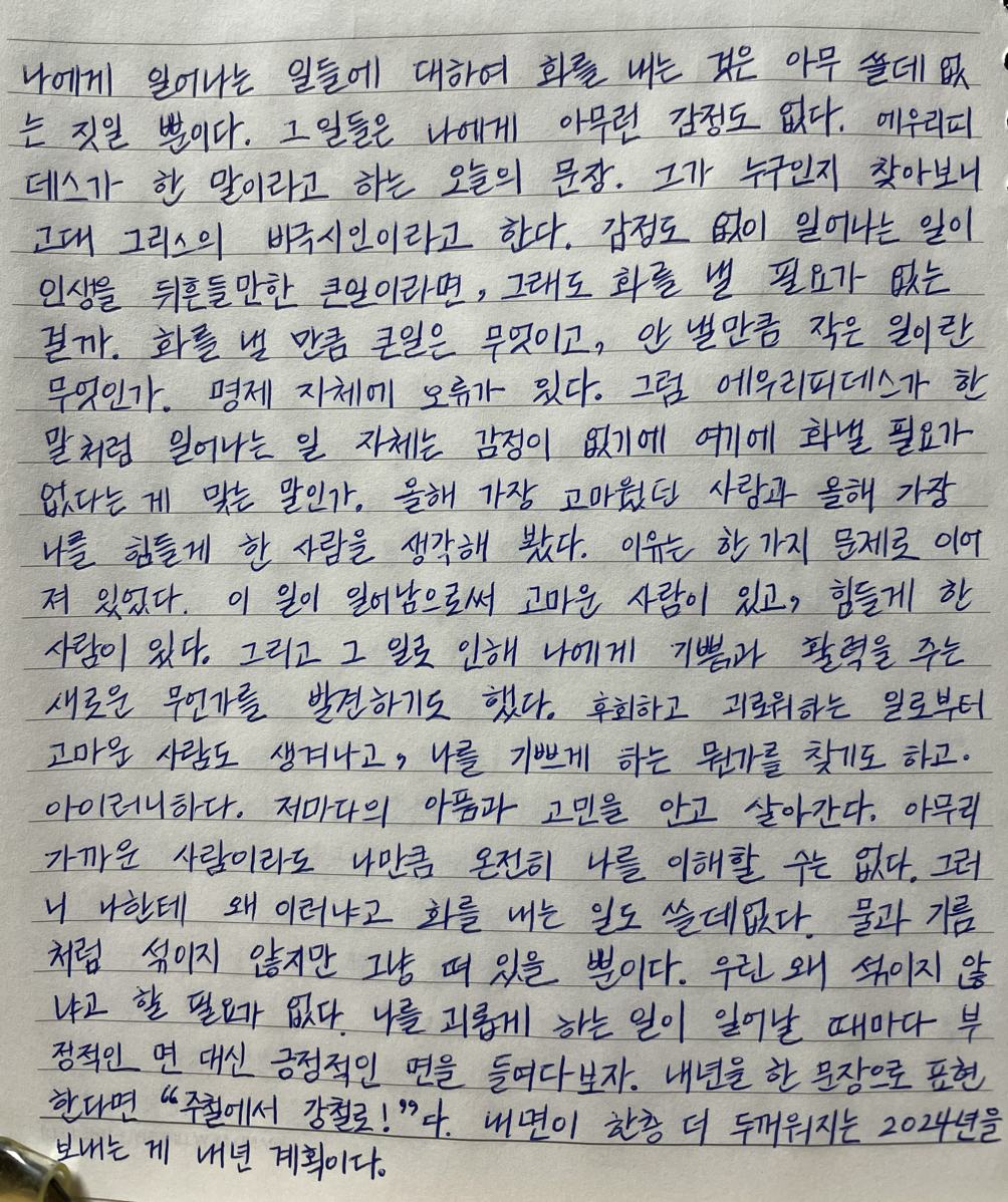 내면이 한층 더 두꺼워지는 2024년을 보내는 게 내년 계획이다.