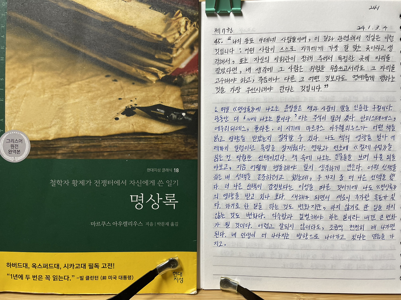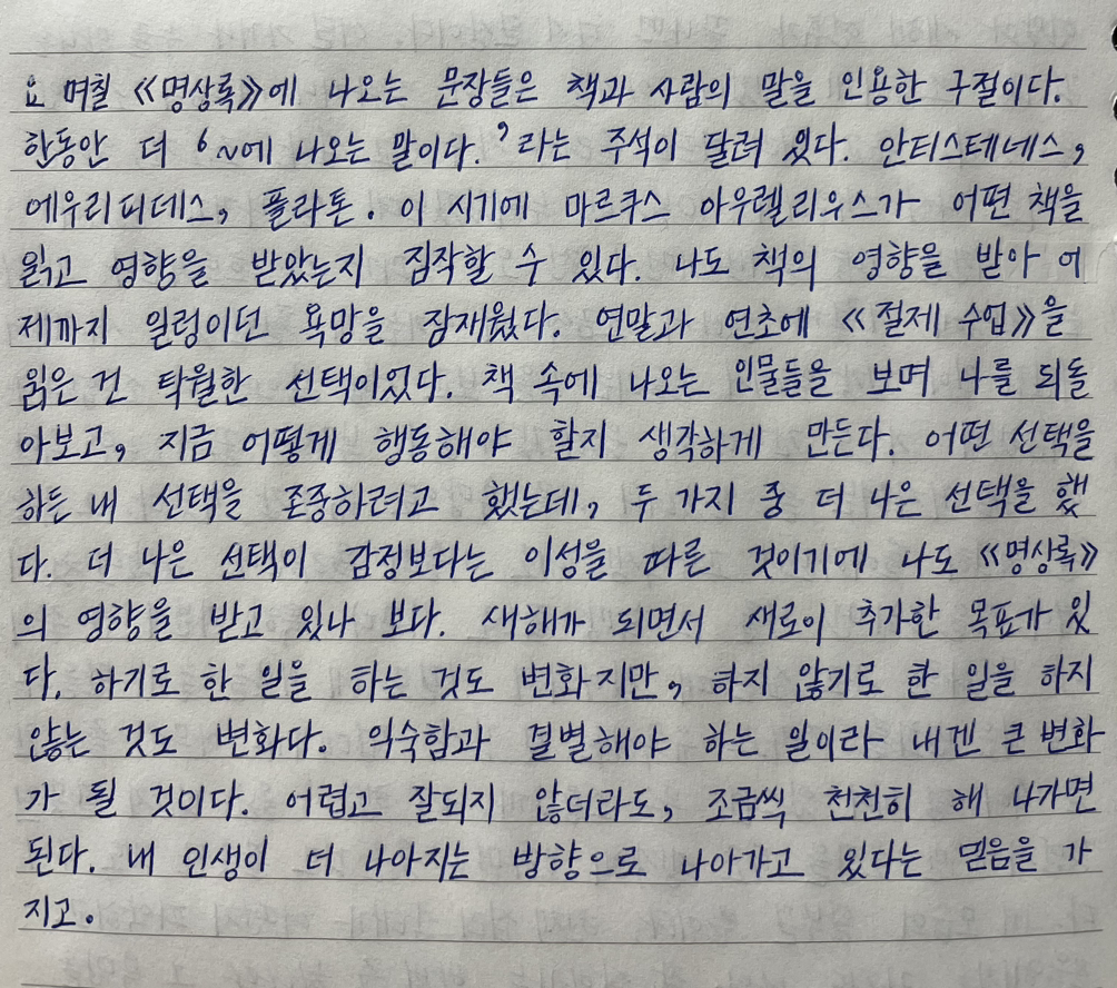 더 나은 선택이 감정보다는 이성을 따른 것이기에 나도 《명상록》의 영향을 받고 있나 보다.