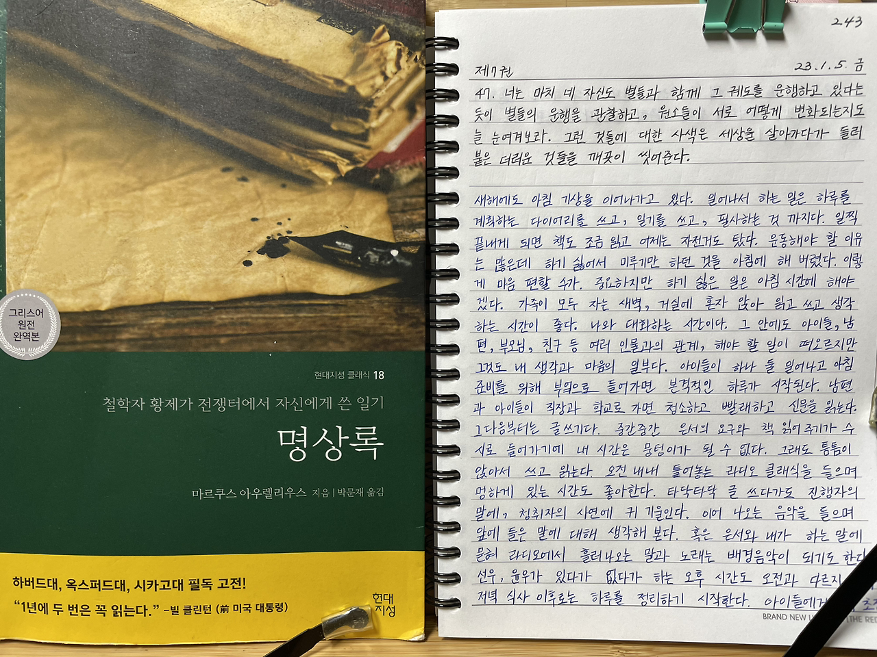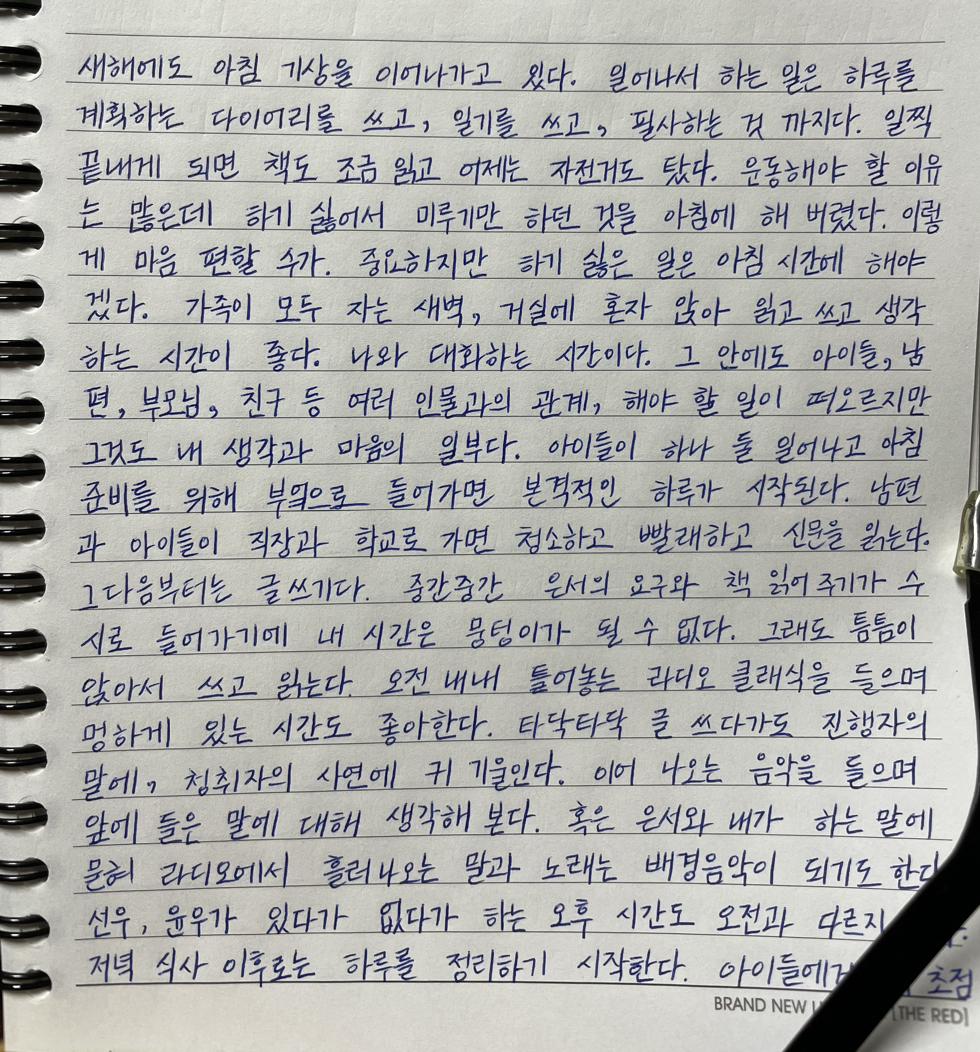 일어나서 하는 일은 하루를 계획하는 다이어리를 쓰고, 일기를 쓰고, 필사하는 것 까지다.