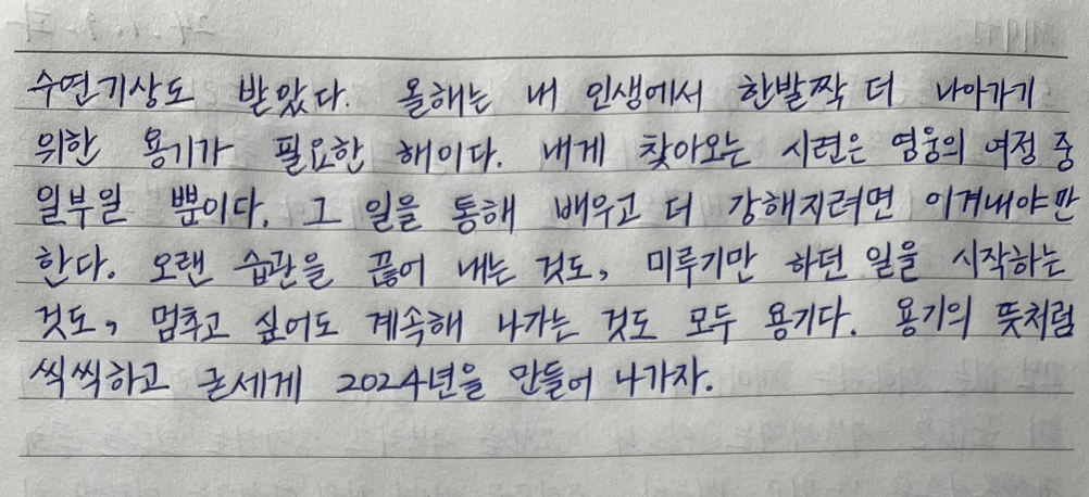 용기의 뜻처럼 씩씩하고 굳세게 2024년을 만들어 나가자.