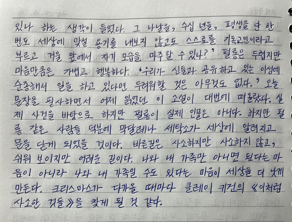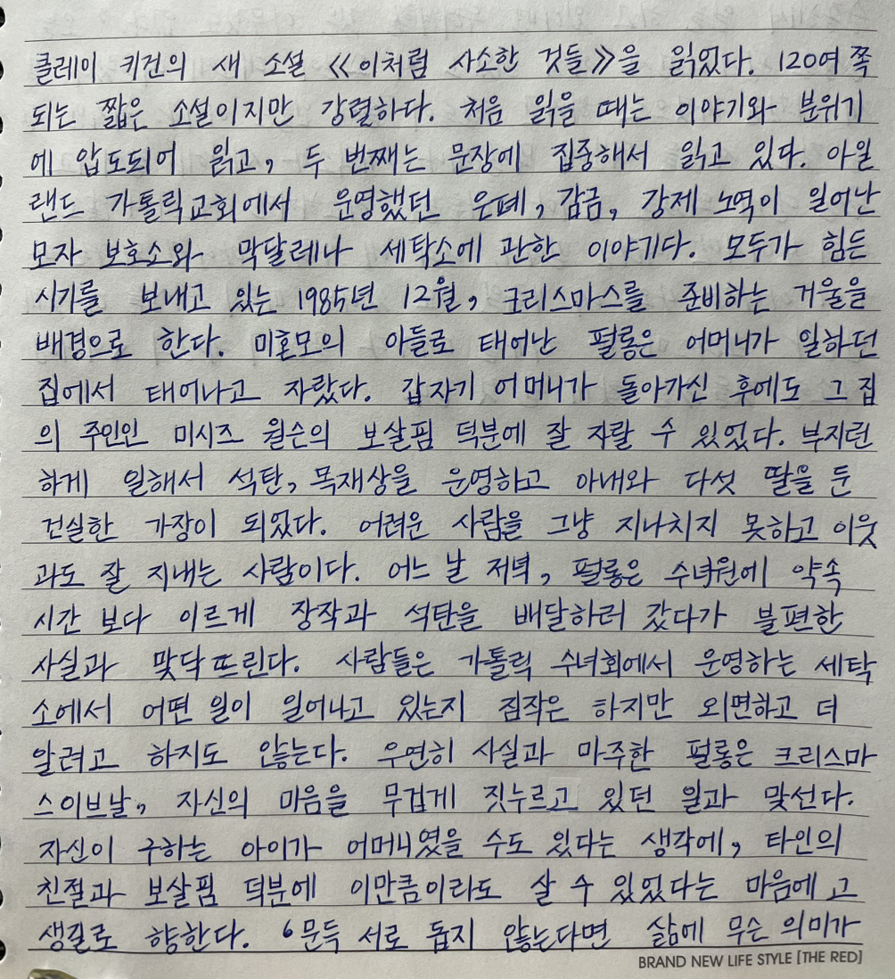 크리스마스가 다가올 때마다 클레이 키건의 《이처럼 사소한 것들》을 찾게 될 것 같다.