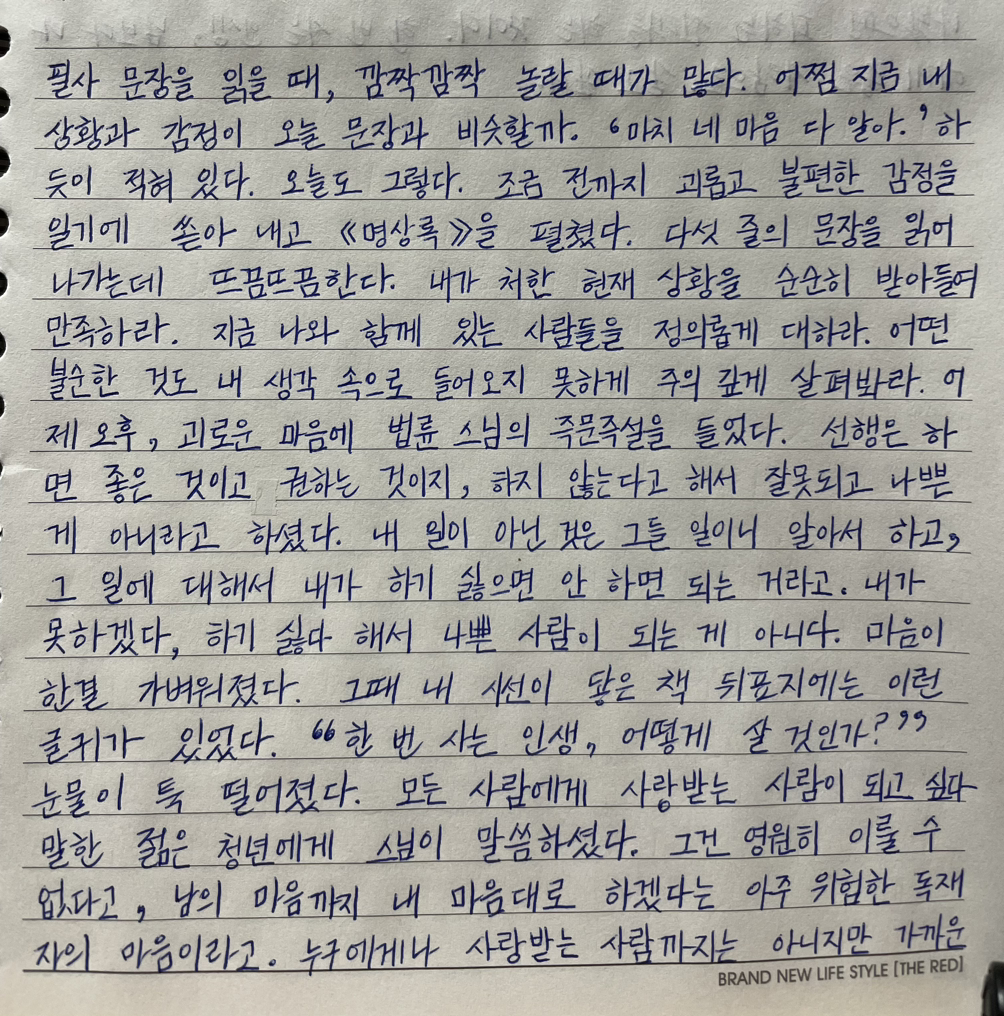 필사 문장을 읽을 때, 깜짝깜짝 놀랄 때가 많다.