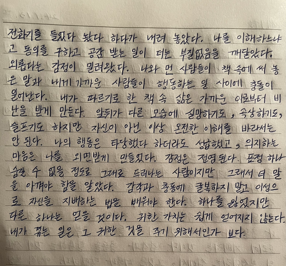 나를 이해하느냐고 동의를 구하고 공감받는 일이 더는 부질없음을 깨달았다.