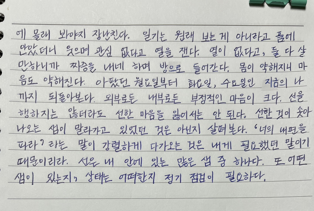 아팠던 월요일부터 화요일, 수요일인 지금의 나까지 되돌아본다.