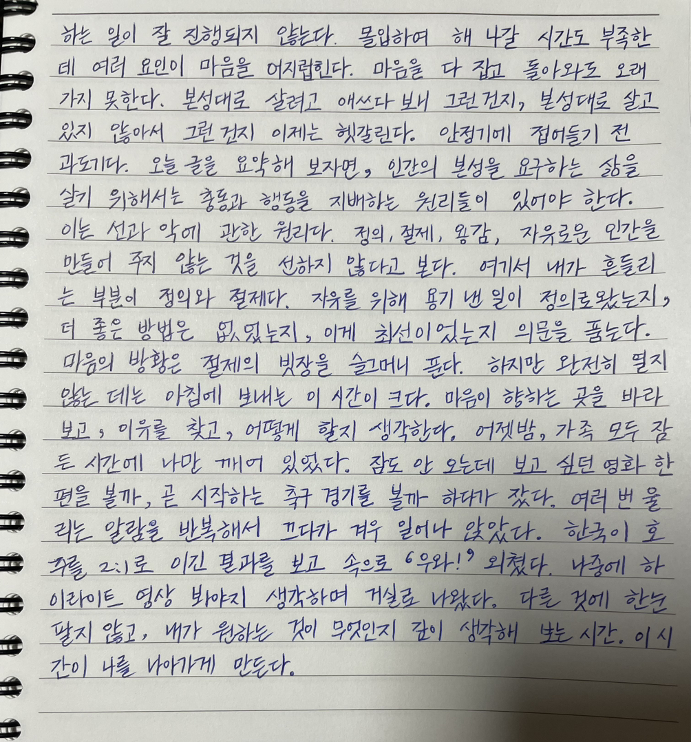 본성대로 살려고 애쓰다 보니 그런 건지, 본성대로 살고 있지 않아서 그런 건지 이제는 헷갈린다.
