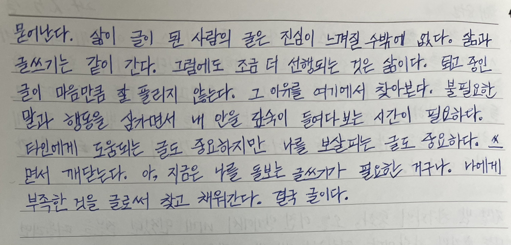 타인에게 도움 되는 글도 중요하지만 나를 보살피는 글도 중요하다.
