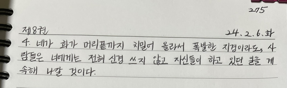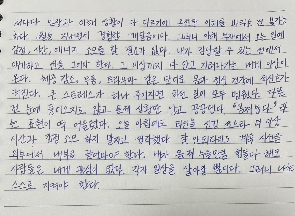 오늘 아침에도 타인을 신경 쓰느라 더 이상 시간과 감정 소모하지 말자고 생각했다.