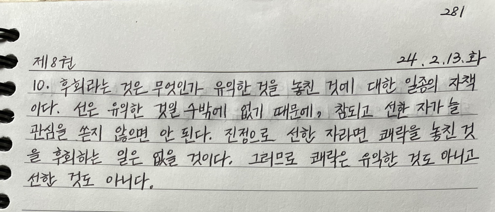 후회라는 것은 유익(이롭거나 도움이 될 만한 것)을 놓친 것에 대한 자책이다.
